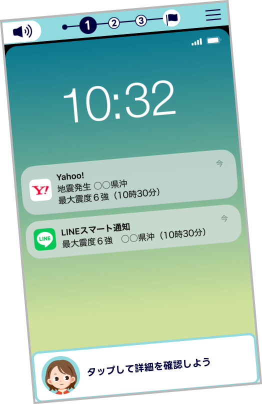 ヤフーやLINEのアプリ通知で災害情報をいち早く受け取ろう。