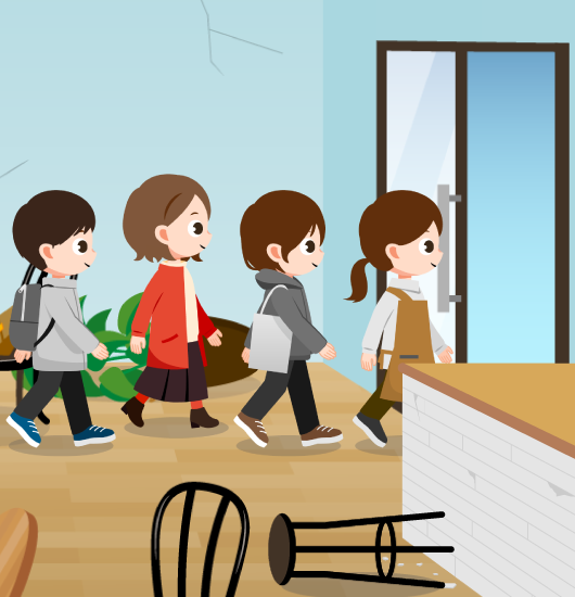 多くの人がいる場所で慌てて出入り口に駆け寄ると、人が折り重なって倒れる「群衆雪崩」の危険があります。揺れが収まってから店員や係員の案内に従って、冷静に避難を開始しましょう。